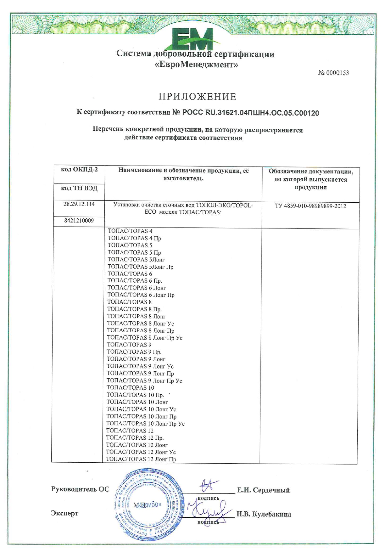• Сертификат соответствия Топас