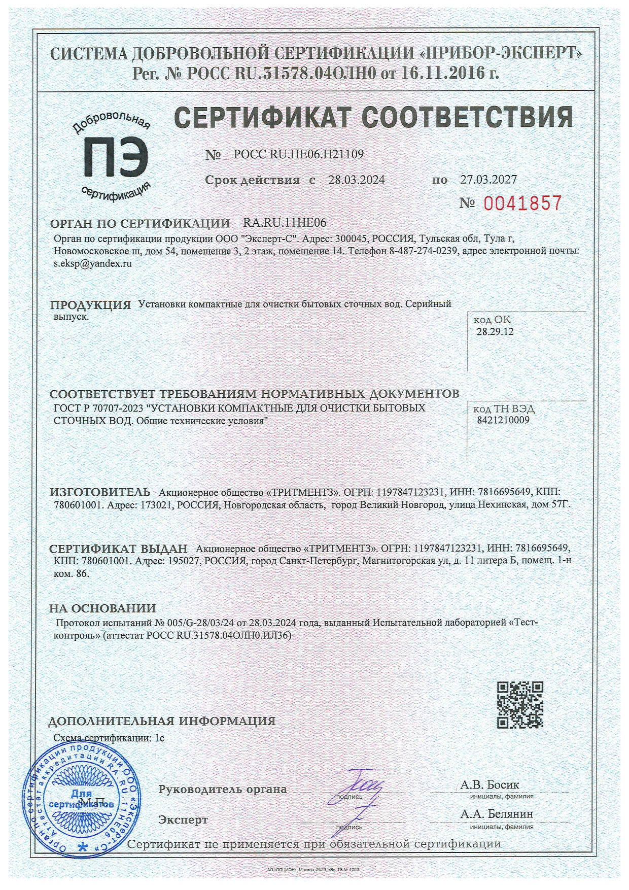 • Сертификат соответствия Биодевайс